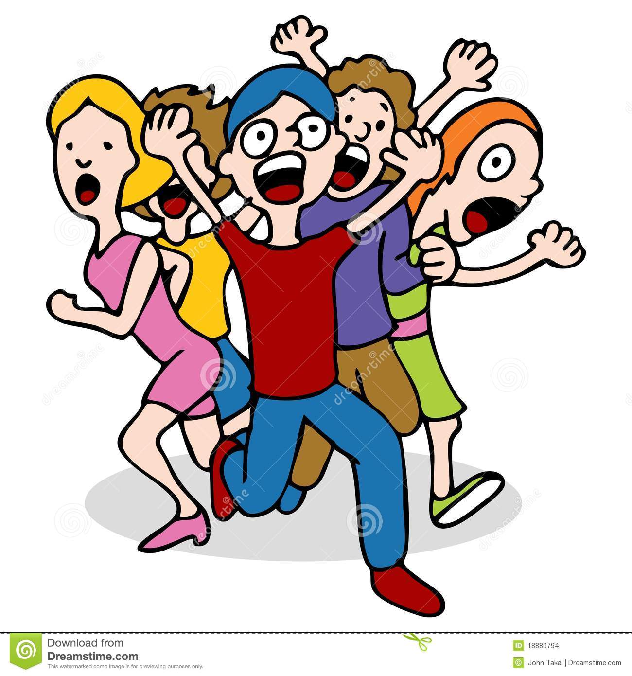 Definition: To run in panic with other people. It can also be a noun which means an incident wherein a group of people fleeing in terror. A synonym is (man) corre-corre.